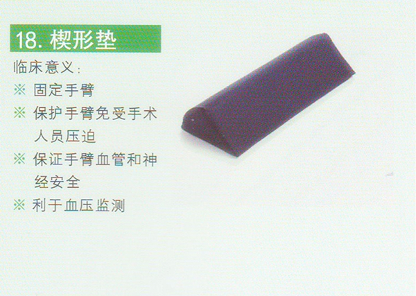 一般用于仰卧位手术,仰卧位手术时垫于患者躯干部位两侧,放置患者在手术中移位,固定患者身体。能有效放置点状支撑,保护患者躯干两边的局部皮肤。一般手术用于仰卧位,适合于仰卧位的乳腺手术 与凝胶头肩垫